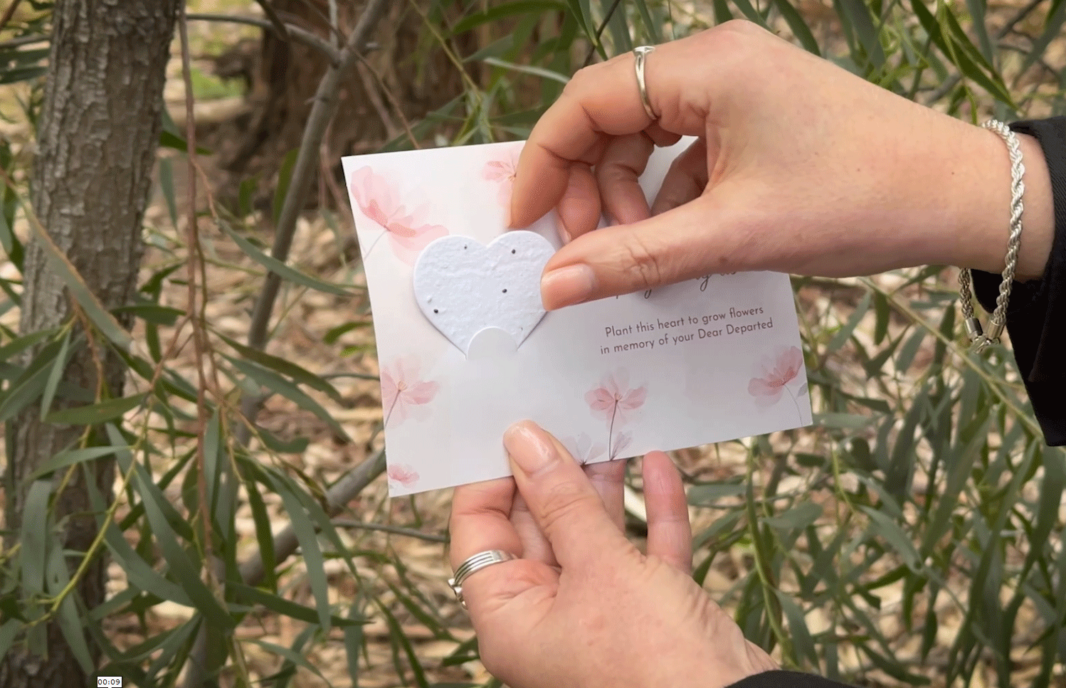 Each card comes with a different heartfelt message behind the seeded memory heart.
